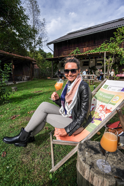 Kot že omenjeno pri 1. točki, je v teh krajih greh, če se ne bi ustavili pri kakšnem vinotoču ali turistični kmetiji. Naj vas opozorim, da imajo Avstrijci raje suha, malce kiselkasta in sveža vina, v tem vinorodnem območju so avtohtone predvsem bele sorte Sauvignon Blanc, muškat, burgundec. Dobra novica za vse vegetarijance – marsikje se dobi tudi dobro vegi ponudbo (zelenjavni krožniki, zelenjavni namazi, odlični (drožasti) domači kruhi …). Za vegane (in seveda vse ostale) pa so se posebej potrudili v Bioweingut Otto Knaus – ponujajo 3 t.i. “Bretljause” torej obložene lesene deske: prva je tradicionalna z mesninami, druga za vegetarijance in tretja za vegane. Odločila sva se poskusiti vegansko, ker naju je zanimalo, kaj bodo postregli. In prijetno so presenetili z obilico sveže in vložene zenjave, sadnjem, popečenimi bučkami, namazi iz koruze, fižola, okusni sveži kalčki in dva popečena polpeta. Zraven seveda ni smela manjkati solata iz “Käferbohnen” oz. velikega rjavega fižola. Cene? Glede na to, da je pri njih vse bio, so se nama zdele primerne: vse deske stanejo 9,50€, solata je bila 5,50€.
