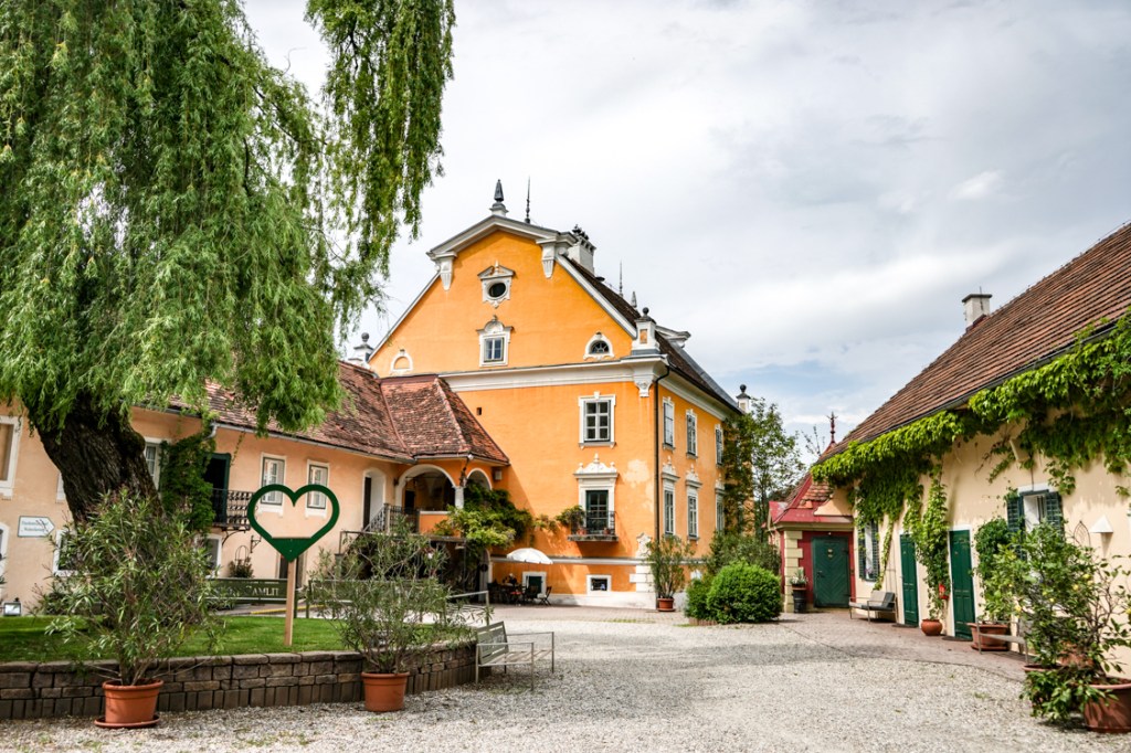 The old town in Gamlitz is bigger than in Ehrenhausen but not as spectacular. In the center is a church, plague memorial and nice renovated buildings, but we were more interested in the castle, which dates all the way back to 1111 (of course not in today’s form). It has a beautiful yard, where you can enjoy some good food and wine.