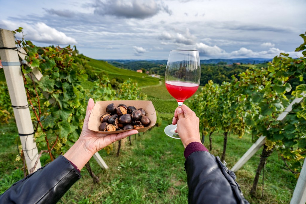 Right now we have autumn, which means the first grapes are harvested, pressed and made to must (in this region look for “Sturm”). Aaand nothing is better with “Sturm” than maroni. 😉 You can find many stalls along the “Wineroad” selling these two local delicacies.