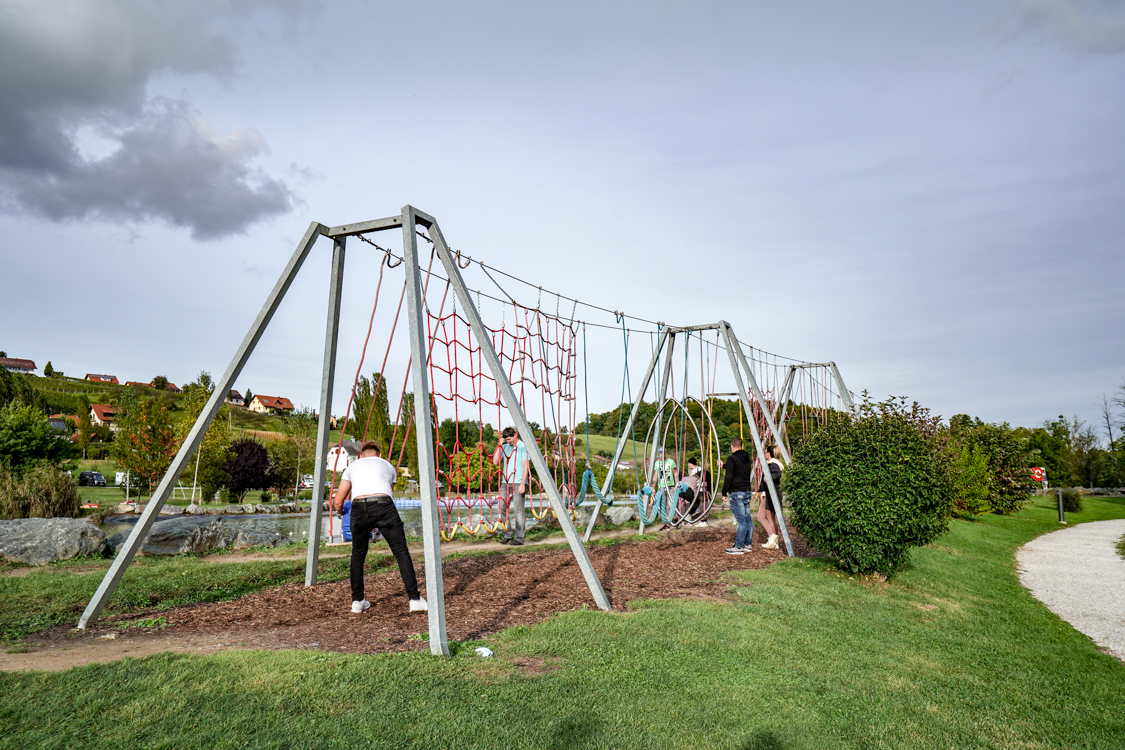 Motorikpark means there’s a park with different obstacles, which you or your children should manage. It’s supposed to be the biggest in Europe. They offer 41 obstacles for improving your balance, endurance and coordination. Next to the park is also a swimming lake. You can also come by camper, unfortunately dogs are not allowed. There’s no entrance fee, you just have to pay for parking.