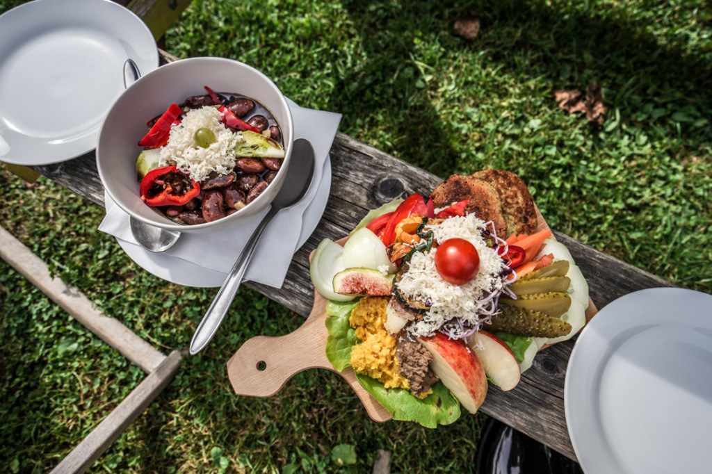 As already mentioned in nr.1, it would be a sin not to visit a winery or “buschenschank” when visiting this region. You should know that the Austrian like dry and fresh wines, that’s why you’ll find here the grape varieties Sauvignon Blanc, Muscat and Burgundy. Good news for all vegetarians – in many Buschenschanks you can get good vegi food (expect veggie plates, spreads, good homemade sourdough bread …). For all the vegans here (and also everybody else 😉 ): Bioweingut Otto Knaus specializes in bio products and they offer 3 different wooden boards – a traditional one with meat, one for vegetarians and one for vegans. We tried the vegan one and were really surprised by how tasteful it was – everythings from fresh fruit and vegetables, pickeled veggies, a fried patty, fried zuccini, sprouts … and the wholegrain bread was sooo delicious. We also ordered a “Käferbohnensalat”, so a big bean salad. Prices were reasonable: wooden board 9,50€ (same price for all 3 types), salad 5,50€.