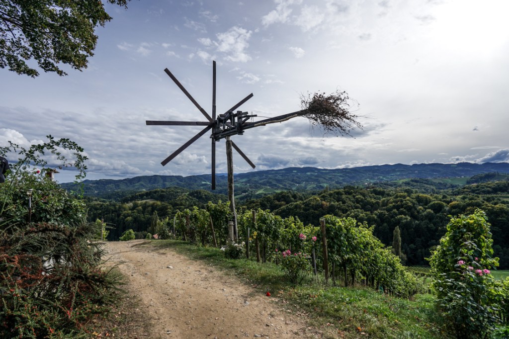 Yes, you read right. In Leutschach you can find the biggest grape in the world, which is also in the Guinness book of world records. It’s a 5 meter big art sculpture full with symbols: 366 pearls for very day of the year (including gap years), 52 different parts (50 leaves, a stem and the grape itself) stand for 52 weeks of the year – there are 31 small leaves for every day in the month, 12 middle leaves for every month and 7 big leaves for every day of the week. There’s also the certificate from the Guiness book of records on display. The grape is on a hill and we expected a nice panoramic view, we were a little disappointed as on the southern side is a big hedge blocking the view.