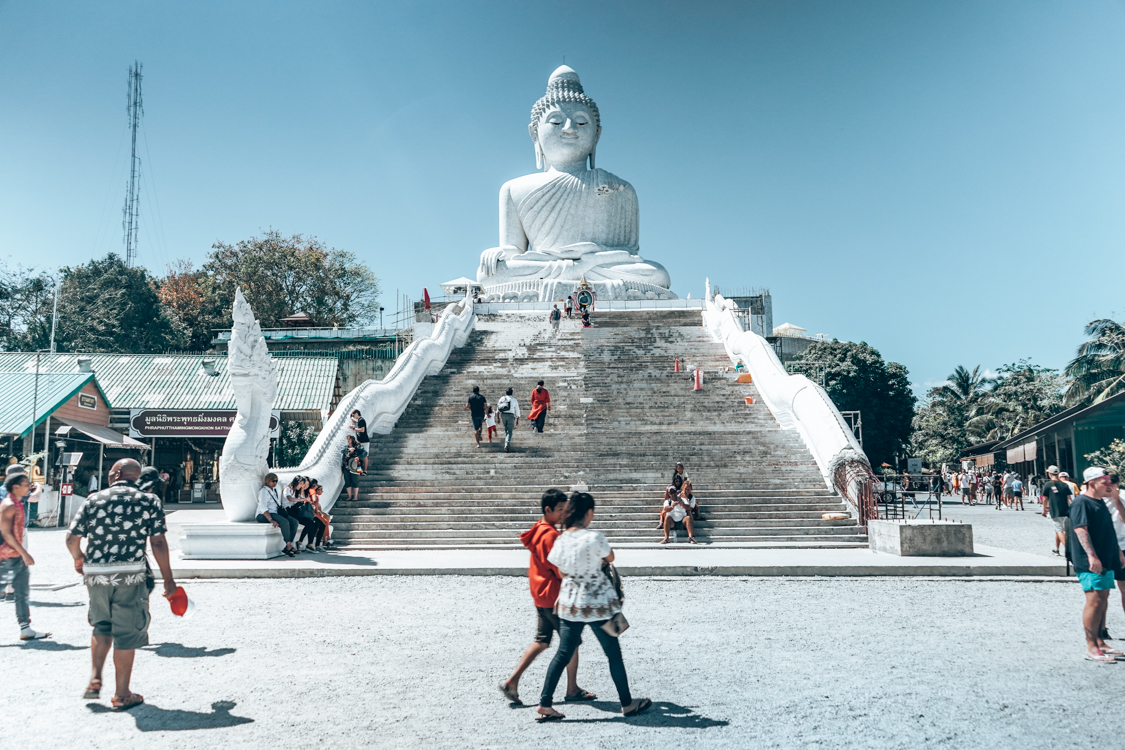 This is the most famous temple on the island of Phuket. There are 2 beautiful buildings, you can enter both and also climb the one with the 60 meters high stupa (or chedi) on top. It has 3 storeys and in all of them are golden Buddha statues and other relicts. If you climb to the top, you can enjoy a beautiful panoramic view over the temple ground. Once up there don’t miss the glass display with fragment of Buddha’s bone. Now and then you’ll hear loud fire crackers exploding – this is how the locals show gratitude, when a wish came true. Just look for a brick oven-like construction, where a man waits to lit the firecrackers for you (for safety reason obviously). Please don’t forget to dress properly.