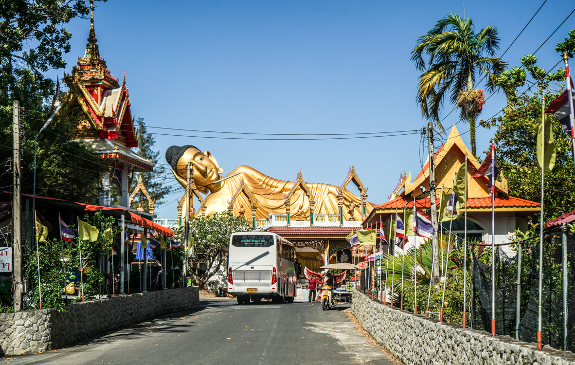 This 45-meter high white marble Buddha sits on top of a hill and can be seen from many parts of the island. Once you parked your motorbike, you’ll enter the temple grounds and you’ll come to a big terrace like space. From here you already have a great view over the southern part of the island. From here you have to climb the marble white staircase up to the Big Buddha. You can walk around the statue and learn a bit about Buddhism if you’re interested. The atmosphere here is really nice and the views breathtaking. You can donate a small amount, take a tin leaf, write down a nice thought and hang it on one of the trees or fences. I think it’s a nice gesture and pays some respect to the local religion. Btw. don’t forget to dress properly.