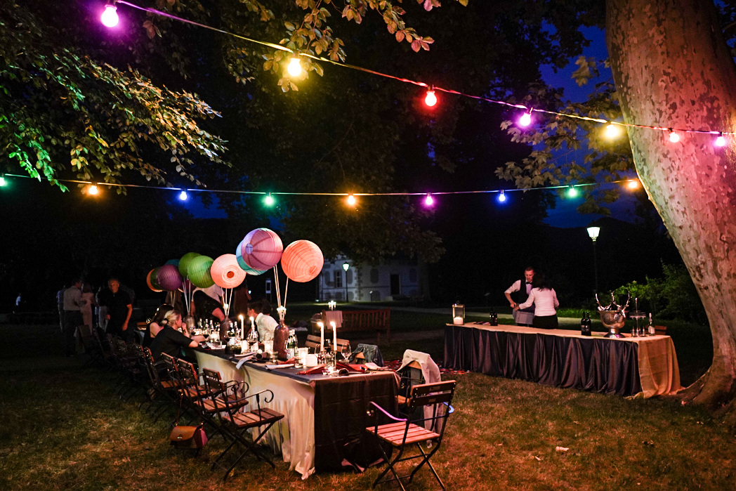 Prispela sva med prvimi (saj veste, točnost je lepa čednost) in takoj v roko dobila kozarec odličnega vina in predjed, ki je bila tako za oko kot za brbončice prava poslastica. Ostali gostje so postopoma kapljali, spoznala sva prijetnega sevniškega župana, med znanimi obrazi se je pojavila tudi Rebeka Dremelj z družbo. Ko smo bili vsi zbrani, so nas pospremili do dolge mize pod mogočnimi kostanji, osvetljene s pisanimi lampijoni. Na jasi pred gradom pa je scena odsevala čisti hedonizem – žametne blazine oblikovane v gnezda na najmehkejših odejah, obdane z visokimi svečniki. Kot bi stopil v drugi svet.