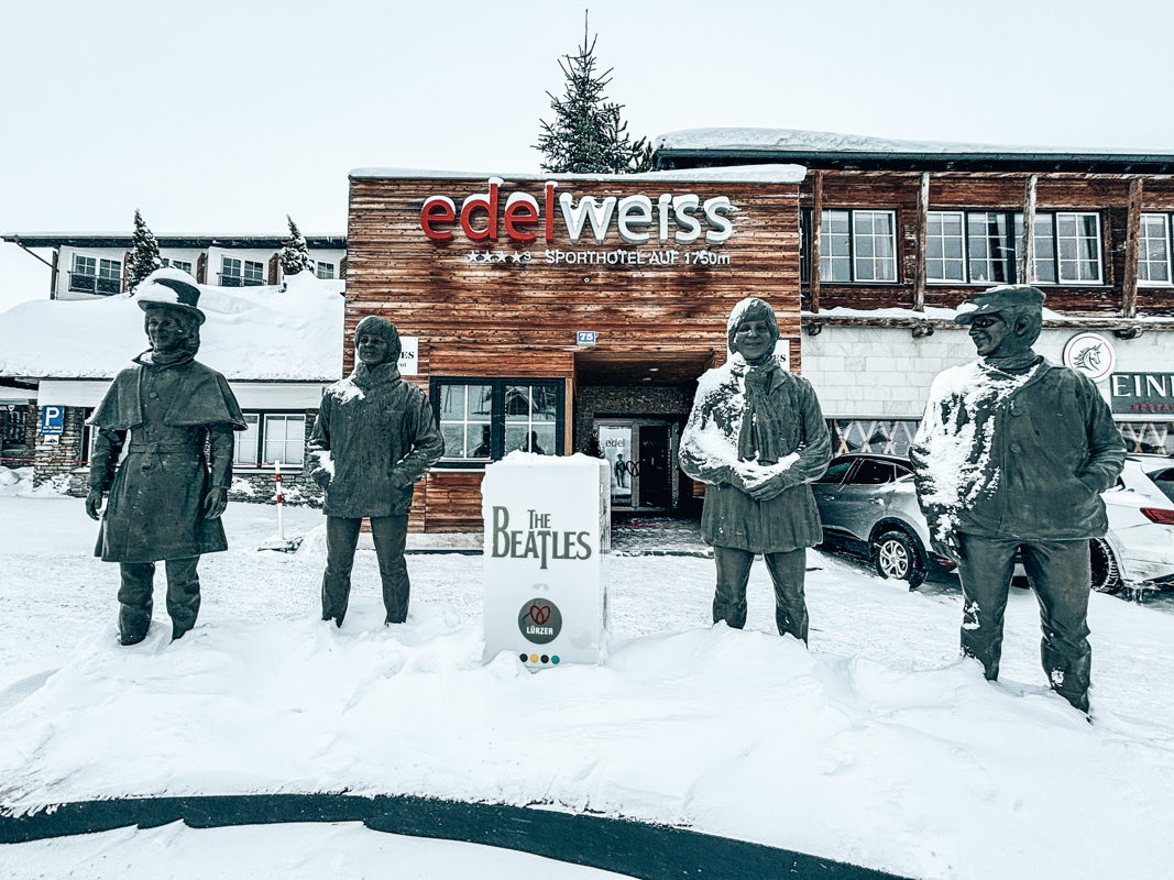Don’t miss the Beatles statue in the center in front of hotel Edelweis. It was errected, because they filmed winter and ski scenes for the movie HELP! in 1965. Fun fact: they couldn’t ski that well, so some locals did the scenes as their doubles. 🙂